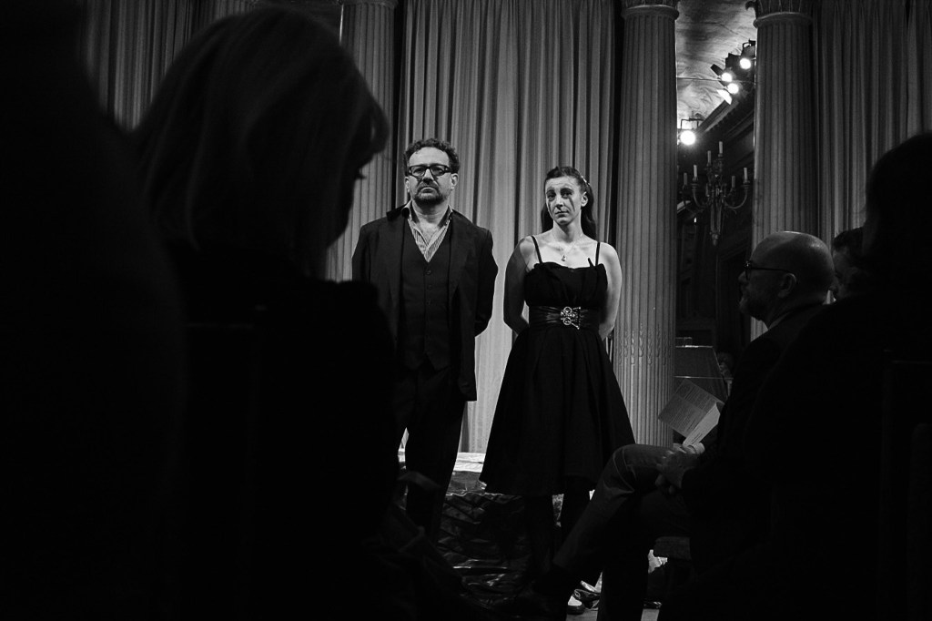 Elena Cotugno in scena per oltre un’ora interpretando due famosi discorsi in Parlamento di Giacomo Matteotti, il primo del 31 gennaio 1921 e il secondo, più celebre, del 30 maggio 1924 che ha portato al rapimento e all’uccisione del politico socialista.
