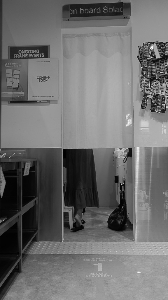Curioso questo trend in analogico. I vari centri commerciali di Singapore, ma immagino di gran parte delle città asiatiche, sono pieni di aree dedicate a self-photo-studio, un concetto a metà strada da un vero e proprio studio fotografico e una ‘classica’ cabina per le foto d’identità.
